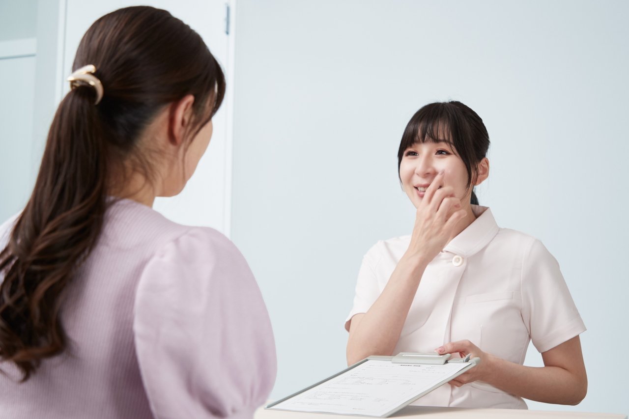 美容皮膚科に興味津々の患者さん。本日はカウンセリングに来てくださいました。わからないことは納得いくまで質問攻めにしちゃうタイプです。