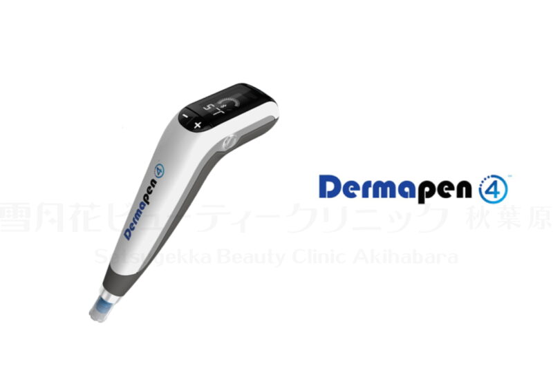 オーストラリアのEquipment社が開発したダーマペンというハンディタイプの機器は、マイクロニードリングの先駆者として世界中に普及しており、当院では最新バージョンのダーマペン4を採用しております。16本の直径0.2mmの極細針が装着されたヘッドが上下に高速振動する構造で、それを肌の上で滑らすことにより、秒間1920個の針穴を開けることができます。従来品(ダーマペン3)と比較して、針がさらに細くなり本数も増えたことで、肌への負担を軽減しており、さらにダーマペン4から新採用のオートマティックバイブレーション機能が、施術による痛みを大幅に緩和しています。これらの改良の積み重ねにより、ダーマペン4は、より効率的で快適な施術を実現しています。