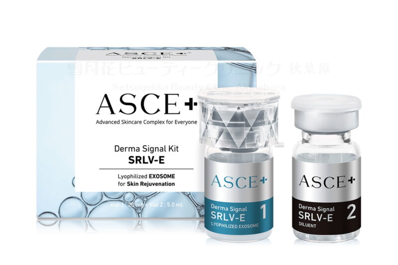 ASCE+は、幹細胞エクソゾーム製剤シェアにて、世界4大企業の1つであるExoCoBio社の最新の製品であり、高純化エクソソームに加え、ビタミン、ミネラル、アミノ酸、ペプチド、成長因子、コエンザイムなどを含有した複合製剤です。ASCE+を塗布しながらダーマペンを行うコンビネーション施術は、エクソソームの組織修復作用により、ダーマペンによる針穴の創傷治癒を促進します。加えて、針穴からのASCE+の効率的な導入により、薬剤本来の作用を十分に発揮させ、肌年齢の回復に大きな効果があります。