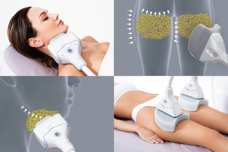 おもに、顎周り・二の腕・胸周り・背中・腹部・脇腹・腰周り・お尻の下・太もも周り・膝上などの施術を承っております。ただし、脂肪の量が少なすぎる場合など、アプリケーターの装着が困難な部分に対する施術はできません。