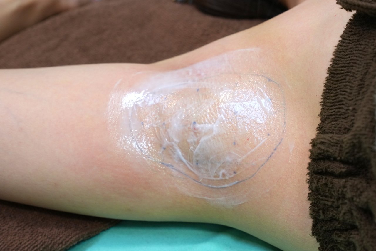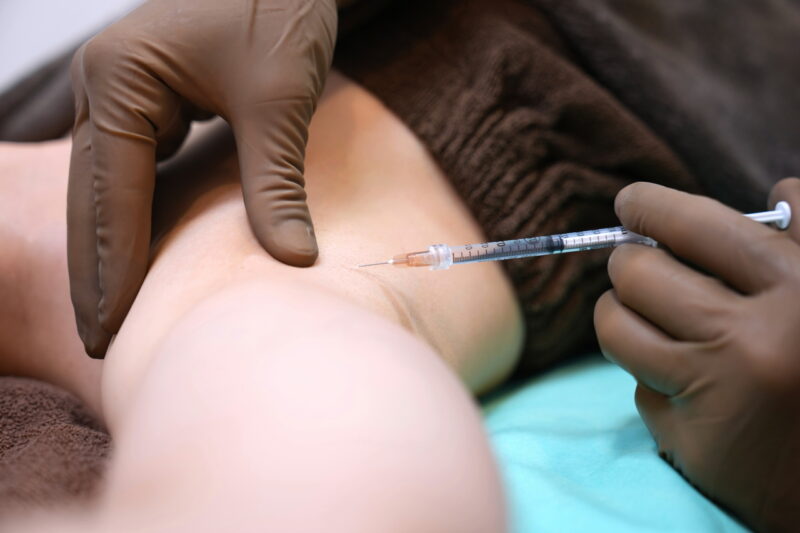 術中の痛みを最小限にするため、注射する部位を十分に冷却してから行います。さらに、針は非常に鋭く細い、専用のものを使用します。以上の対策により、注射の痛みは軽い「チクチク」としたものに限られ、ほとんどの方が、強い苦痛を感じることはないようです。痛みに不安がある場合は、別途費用で麻酔クリームの使用も可能ですので、あらかじめご相談ください。