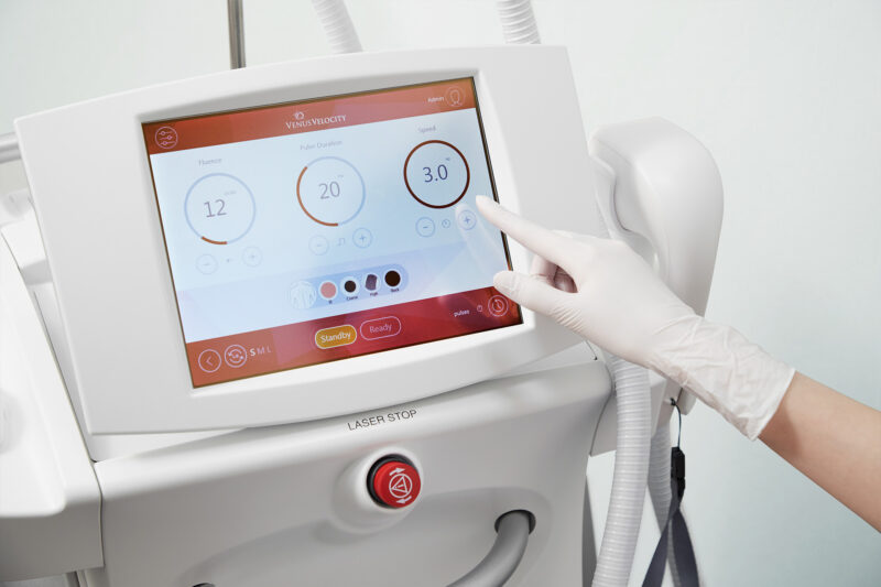 世界60か国以上で多くのシェアを持つ、カナダのVENUS CONCEPT社の医療レーザー脱毛器(イスラエル製)です。マイルドなレーザーを高速で連続照射することで、皮膚へのダメージと痛みを抑えることが可能な「蓄熱式脱毛」と、パワフルなレーザーを単発で照射し、高い脱毛効果を実現する「熱破壊式脱毛」の両方に対応した、ハイブリッド型の最新現行機種です。二つのモードを使い分けることで、それぞれのメリットを活かした施術が可能となります。皮膚との接触面の優れた冷却機構により、照射時の痛みとやけどのリスクを低減するほか、大型のレーザー照射スポットが、施術時間の短縮を実現しています。