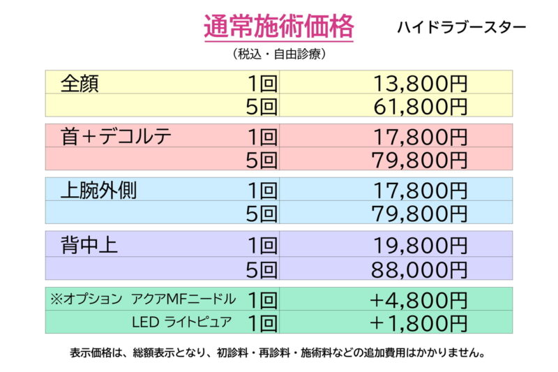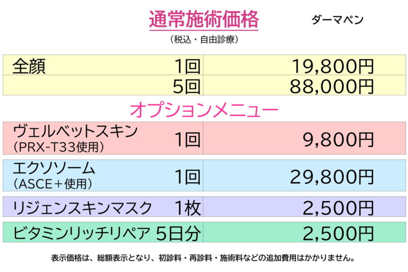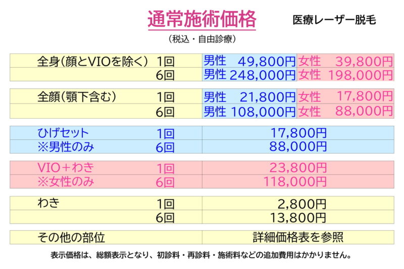 当施術により、術中・術後の痛み、赤み、腫れ、皮下出血、やけど、かさぶた、術後数カ月後の炎症後色素沈着などが生じる場合があります。当院では施術前にすべてのリスクに関する説明を十分に行い、患者様の文書による同意の上での診療を行っております。