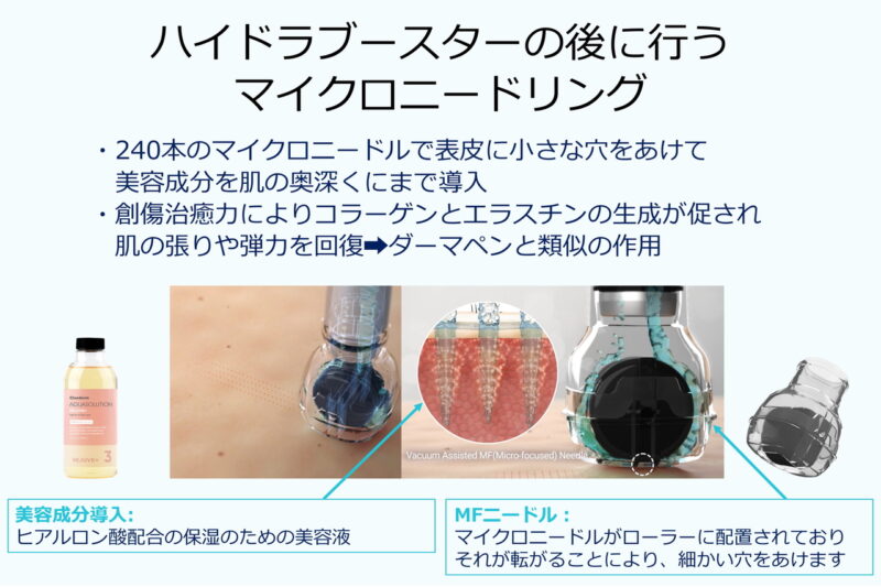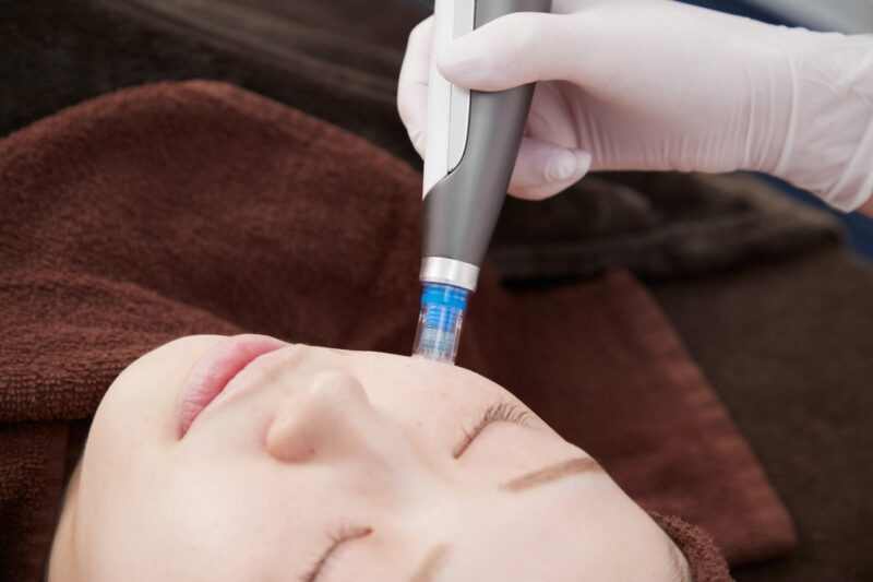 専用の機器を用いて、多数の極細針を皮膚の真皮層にまで刺入する各種施術を総称して、マイクロニードリングと呼びます。針による細かい傷が治癒する過程において、線維芽細胞が増殖することで、コラーゲンやエラスチンなどの、肌の張りや弾力に関わる成分が大量に生成され、肌を若々しい状態へと再生します。ダーマペンは、マイクロニードリングの代名詞と言っても過言ではないほど、世界中で広く用いられている機器です。当院では、肌への負担を軽減しつつも秒間1920個の針孔を開けることが可能な、最新型のダーマペン4を採用しております。