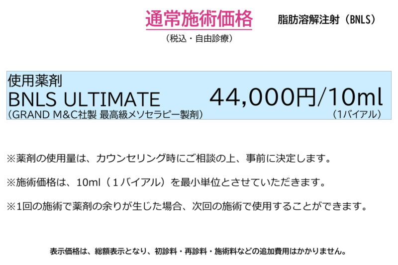 当施術により、術中・術後の冷感、痛み、赤み、腫れ、かゆみ、しびれ、異常知覚、皮下出血などが生じる場合があります。当院では施術前にすべてのリスクに関する説明を十分に行い、患者様の文書による同意の上での診療を行っております。