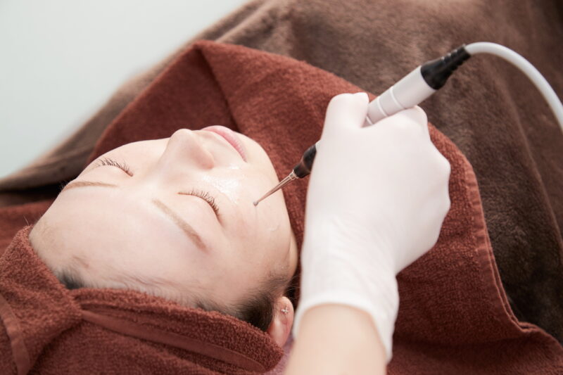 ダーマペンのあとにマッサージピールを行うコンビネーション施術を、ヴェルベットスキンと呼びます。ダーマペンとは、専用の機器を用いて極細の多数の針を真皮層まで刺入する、マイクロニードリングとも呼ばれる施術のことで、創傷治癒能力を利用することにより、コラーゲンやエラスチンの生成を促す作用があります。この施術の直後にマッサージピールを行うことで、ピーリング剤のPRX-T33が針孔からスムーズに真皮層に浸透するため、コラーゲンの生成作用が相乗的に増強し、より強力な肌質改善効果が期待できます。