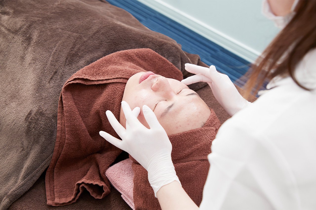 専用のピーリング液を顔全体に塗布することで、有効成分が角質層から表皮にまで浸透して、毛穴に詰まった皮脂や汚れを除去し、ニキビを予防します。さらに、古い角質層を溶解し、皮膚のターンオーバーを促進することで、新しい健全な皮膚が生成されるため、肌のくすみ、毛穴の黒ずみ、ニキビ跡などの、肌荒れ全般に対して効果があります。